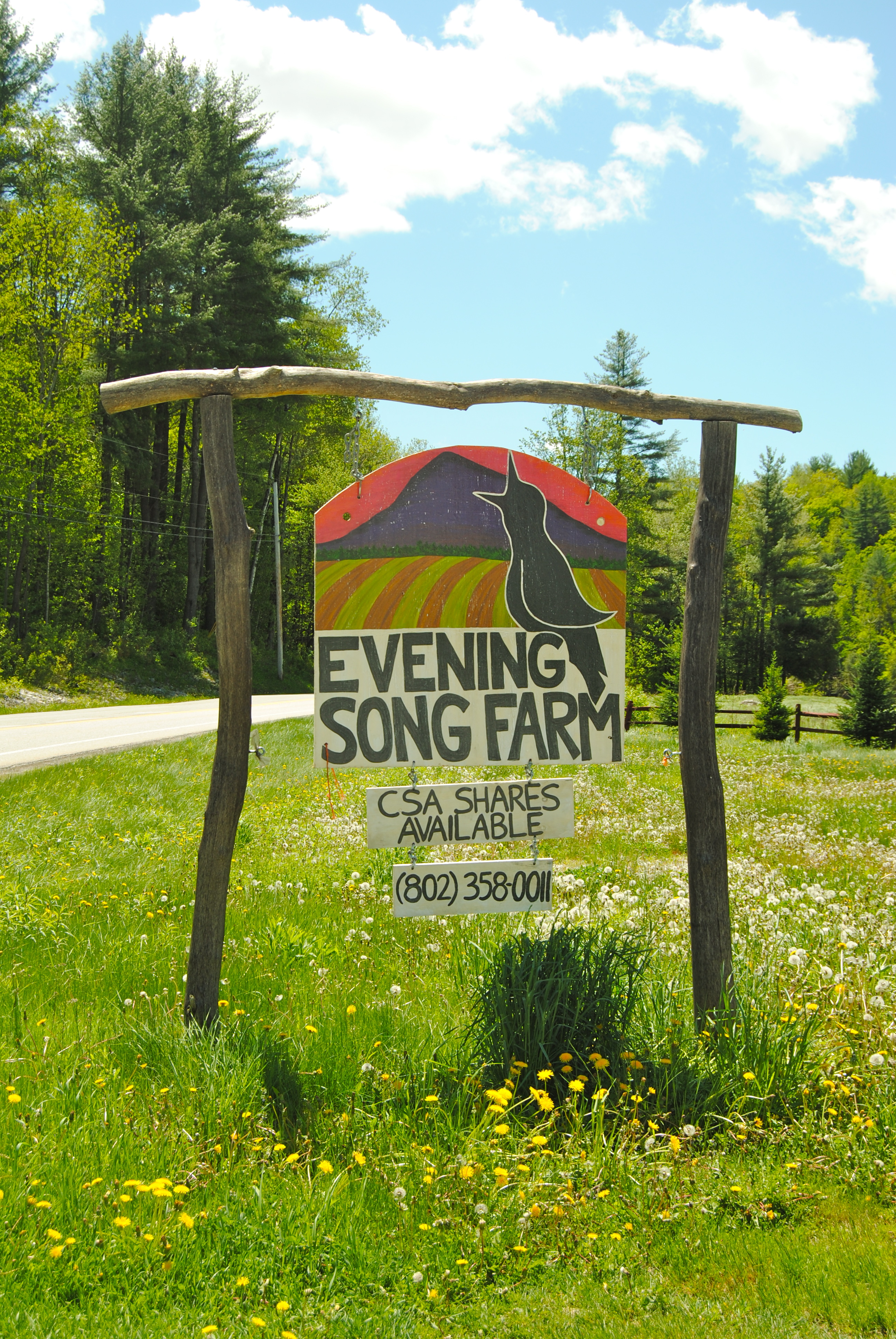 The old sign for Evening Song Farm. The new property is up in the hills, out of the floodplain.