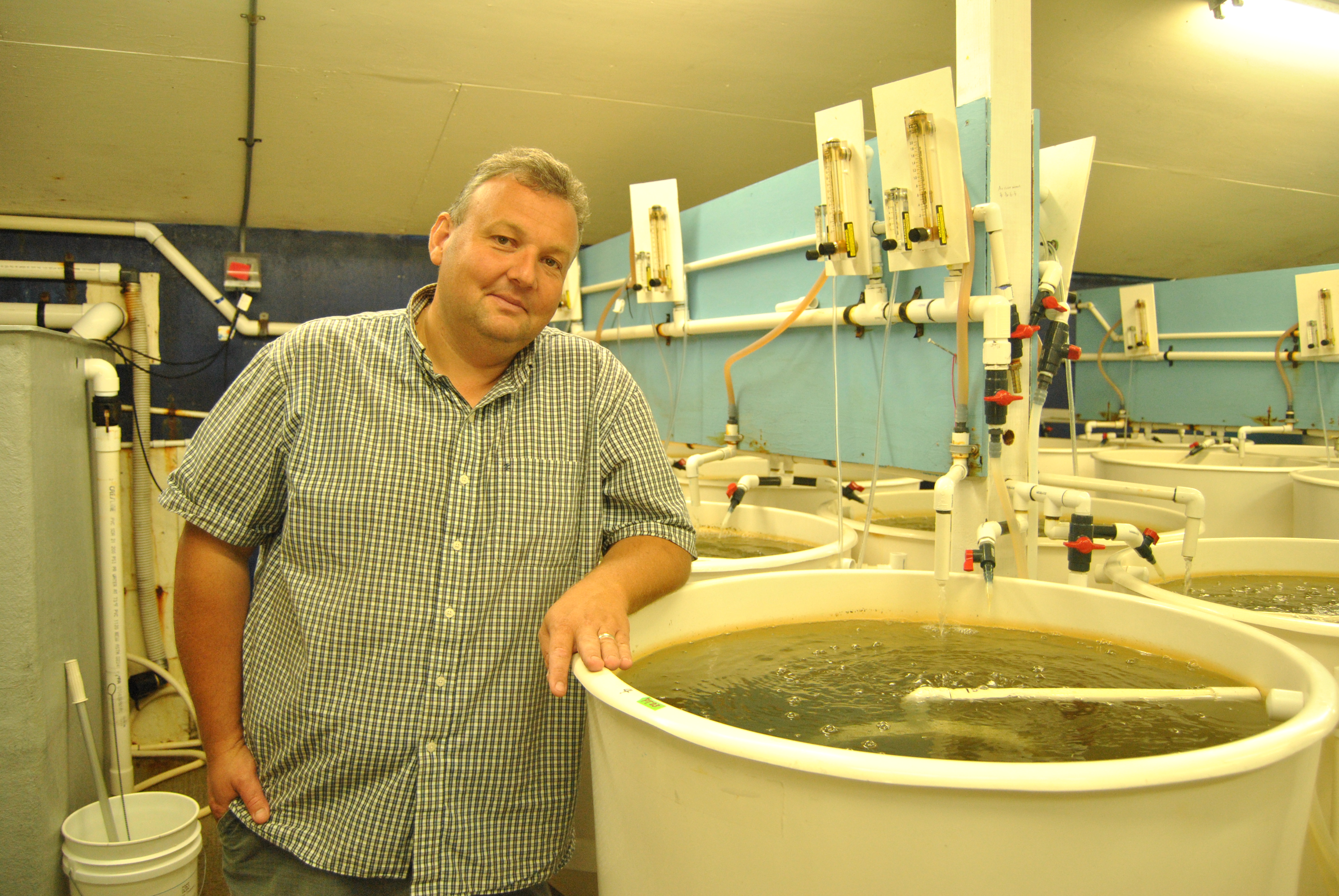 “These look good,” he says. “We’ve been having some trouble growing algae lately. If it’s not problems with the larvae it’s always something else.”