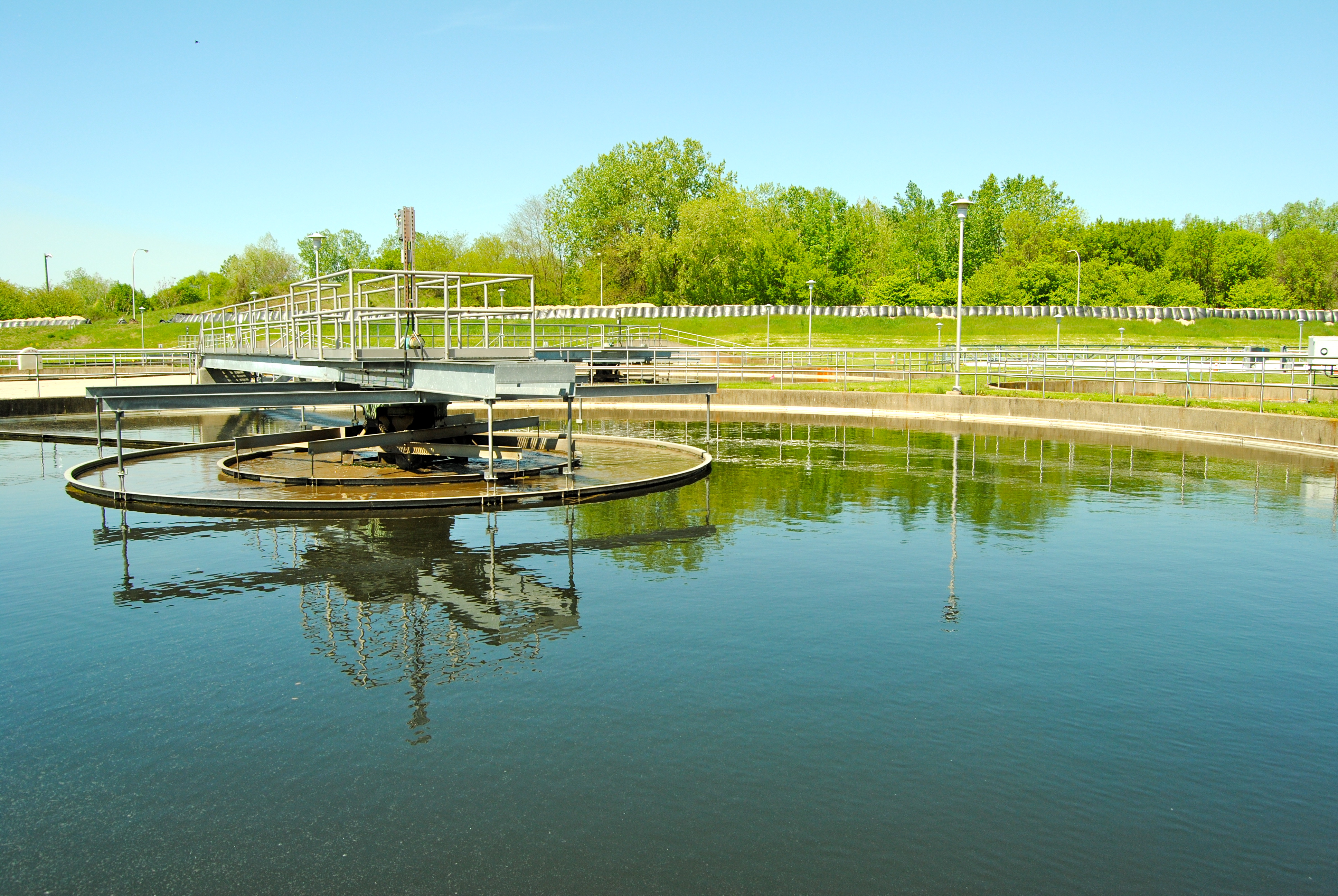 Sand bags line the perimeter of the Grand Rapids Wastewater Treatment Plant, protecting it from a flood.